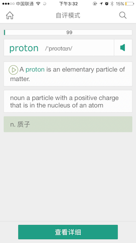 此时页面下方只剩下按钮“查看详细”,点击它跳转到单词的详情页图5。